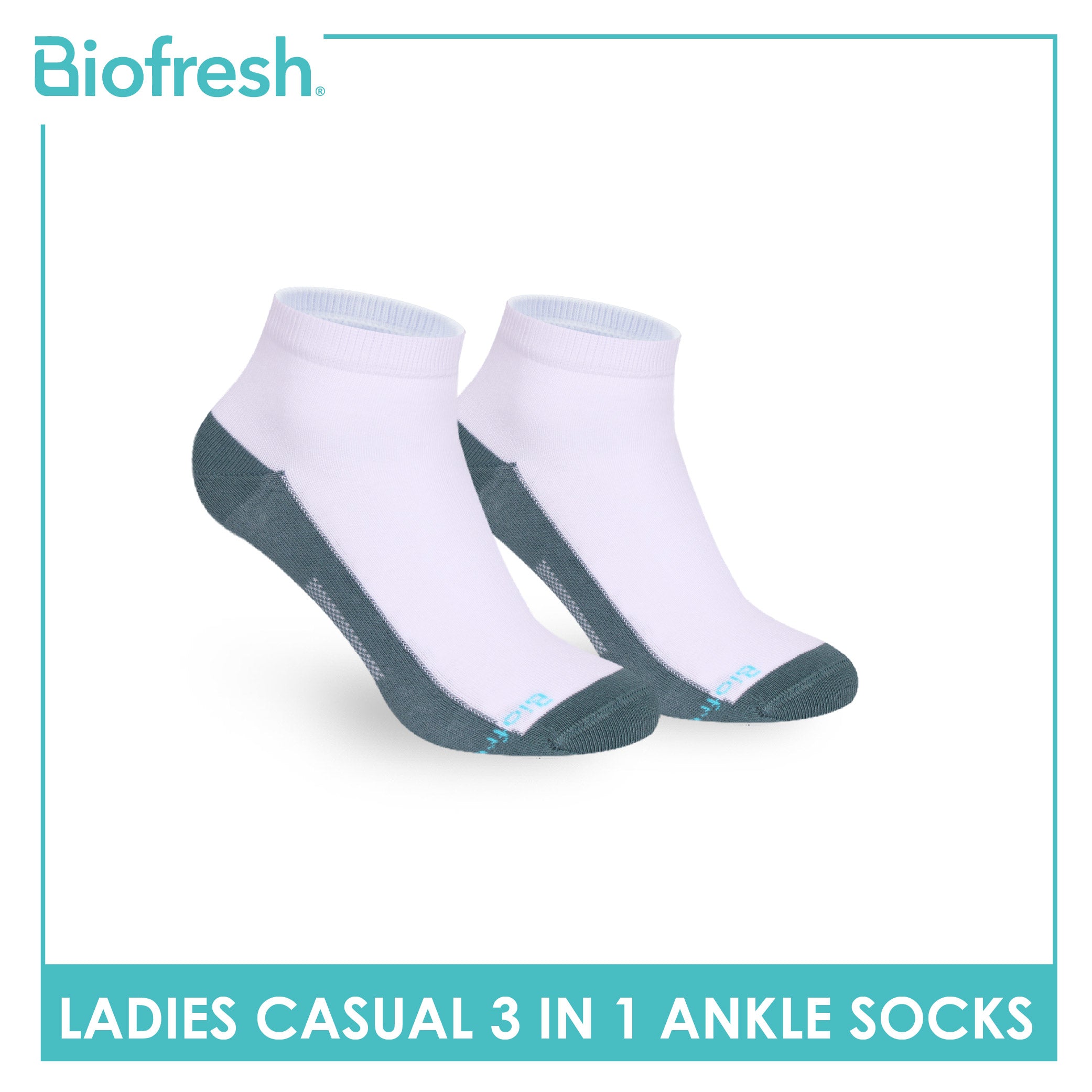 Biofresh Ladies' Antimicrobial Cotton Lite Thin Casual Ankle Socks 3 pairs in a pack RLCKG41