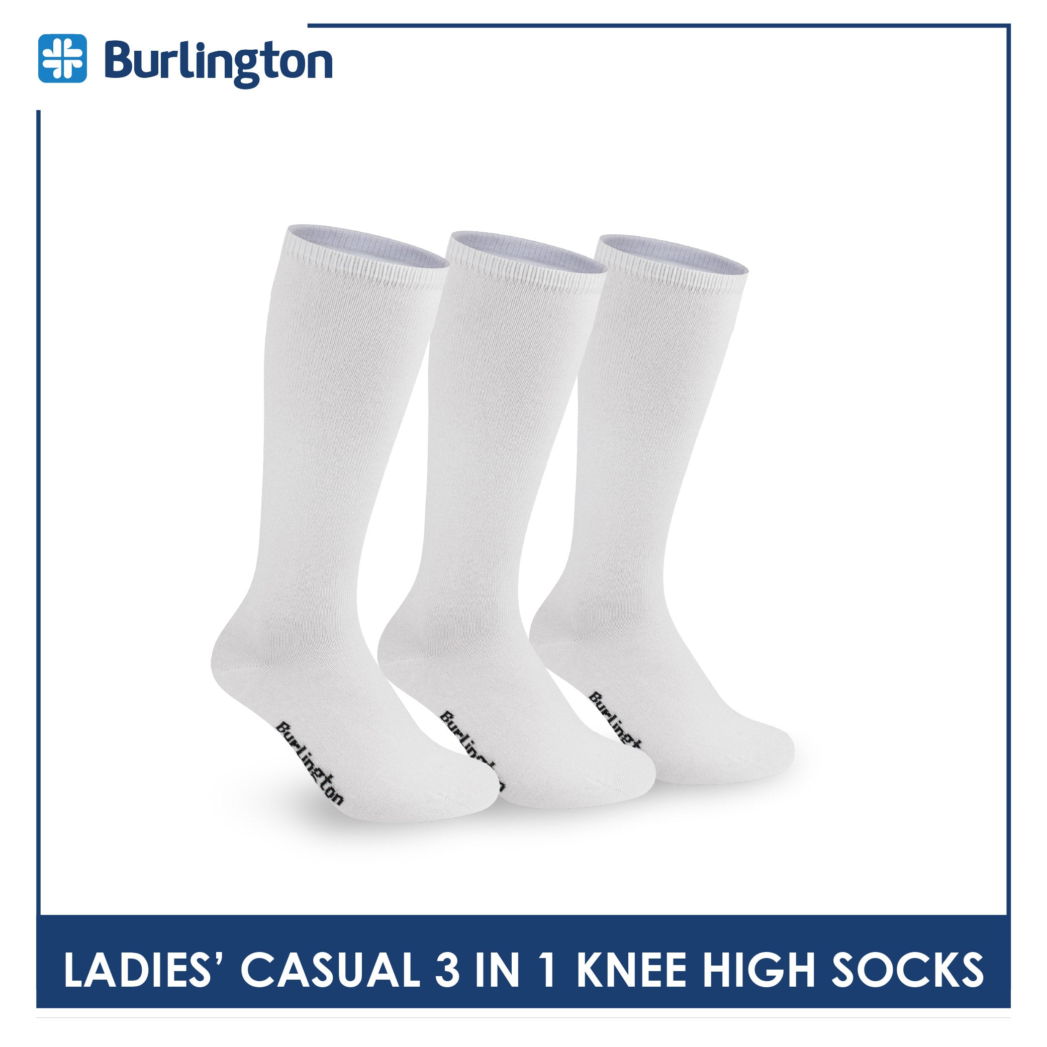 Burlington Ladie's Cotton Thin Casual Knee High Socks 3 pairs in a pack BLHKG2