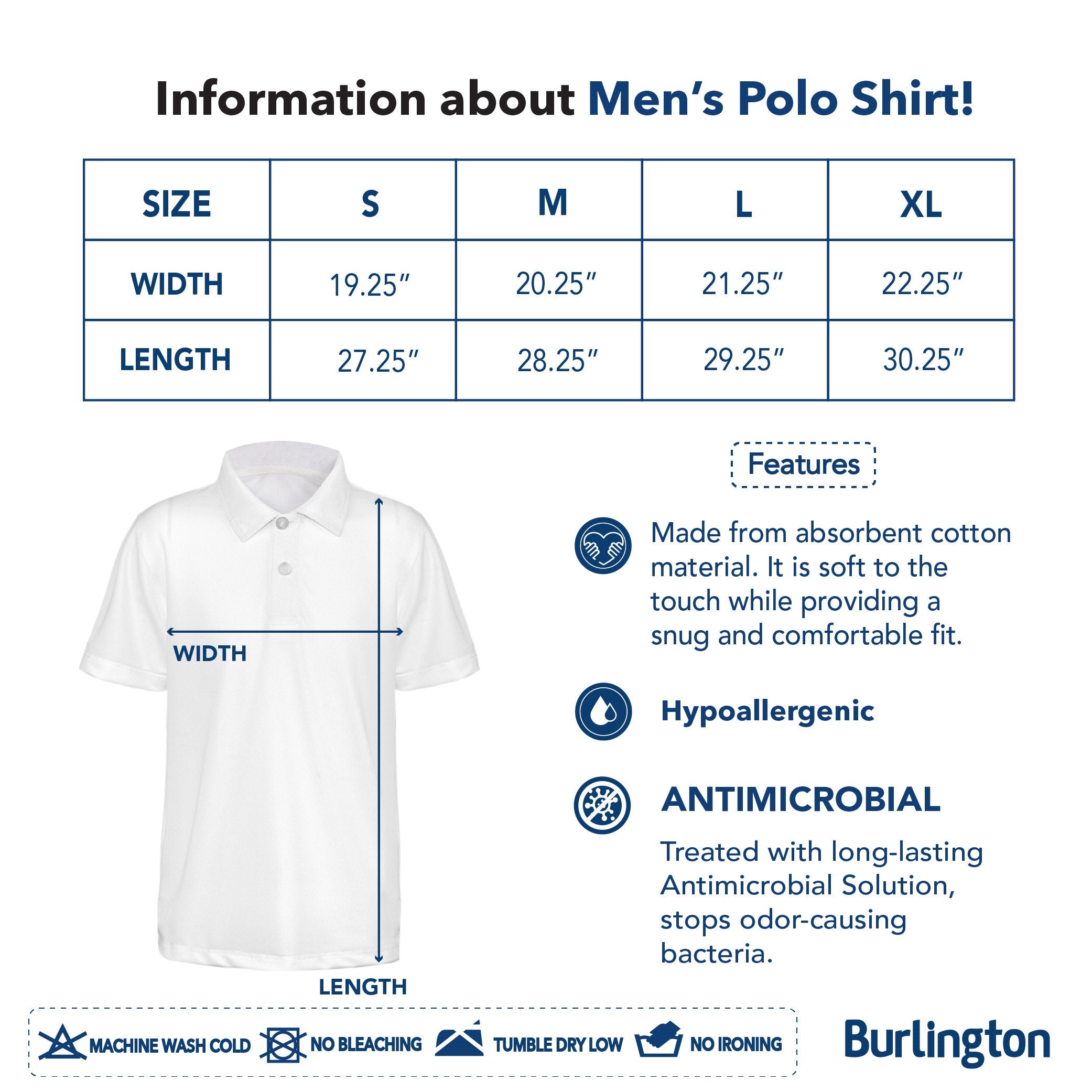 Burlington Men’s Cotton Embroidered Bearlington Collection Polo Shirt 1pc TBMESP1