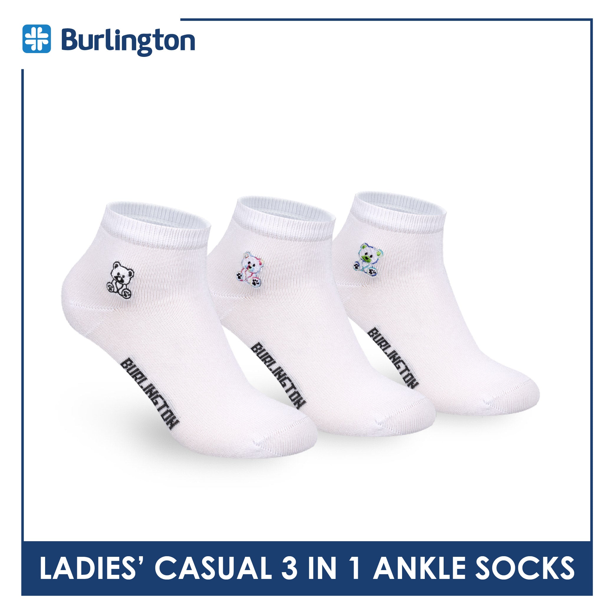 Burlington | Bearlington Ladie's Cotton Embroidered Casual Ankle Socks 3 pairs in a pack TBLE622-5