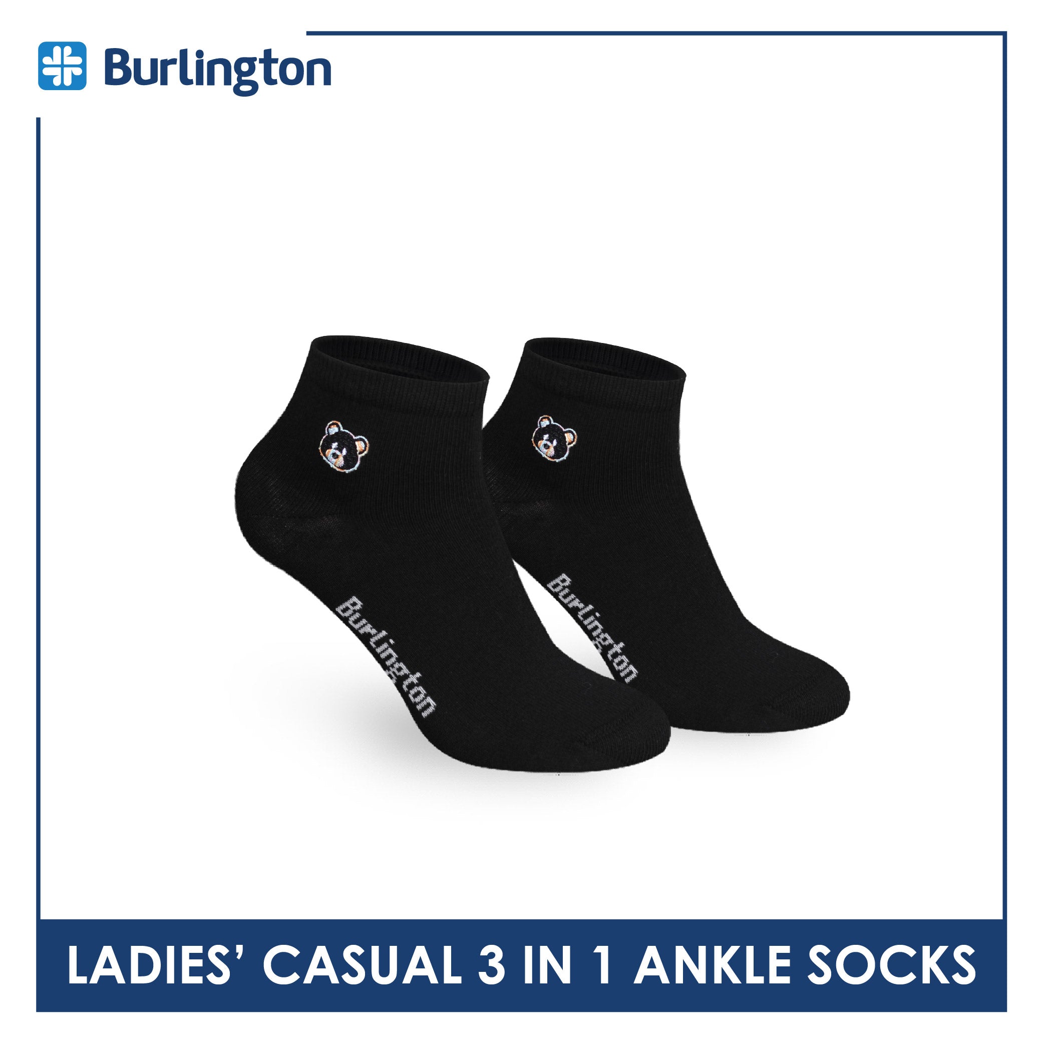 Burlington | Bearlington Ladie's Cotton Embroidered Casual Ankle Socks 3 pairs in a pack TBLE622-5
