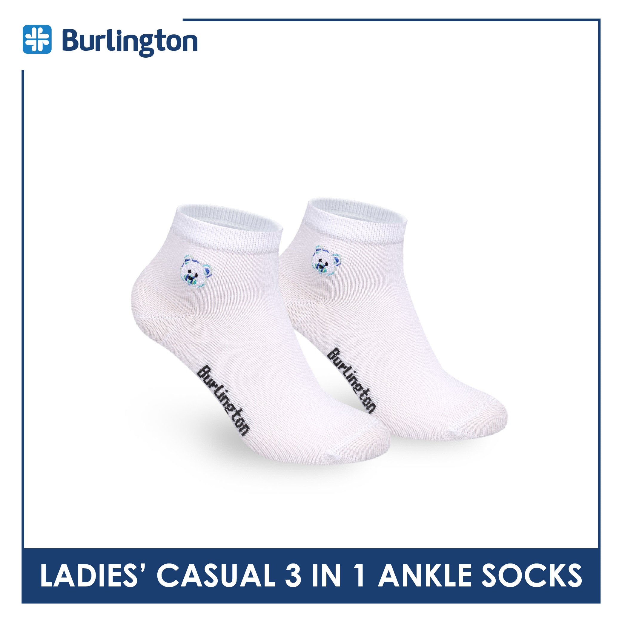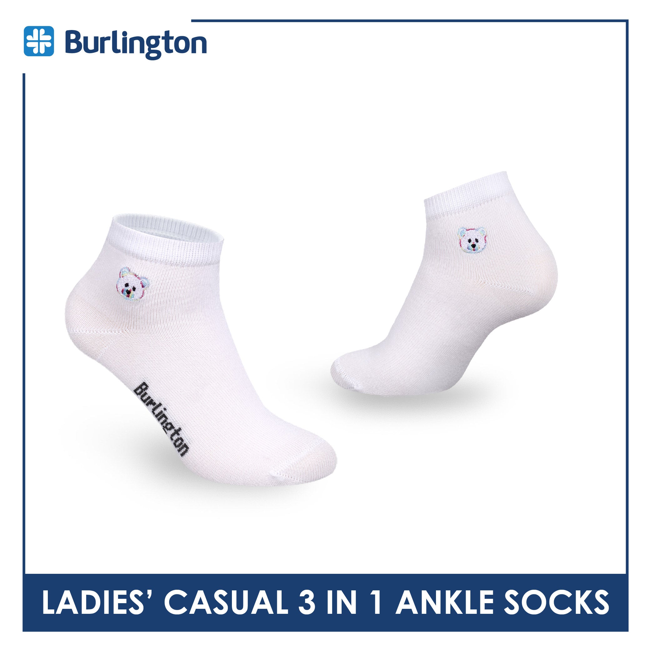 Burlington | Bearlington Ladie's Cotton Embroidered Casual Ankle Socks 3 pairs in a pack TBLE622-4