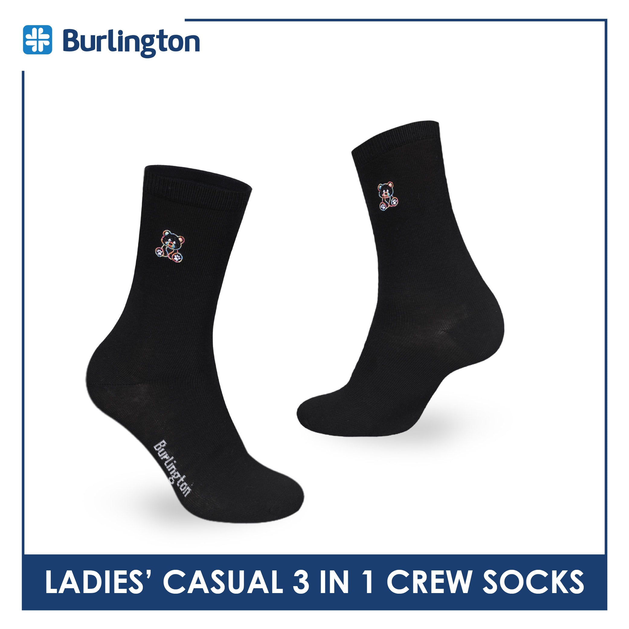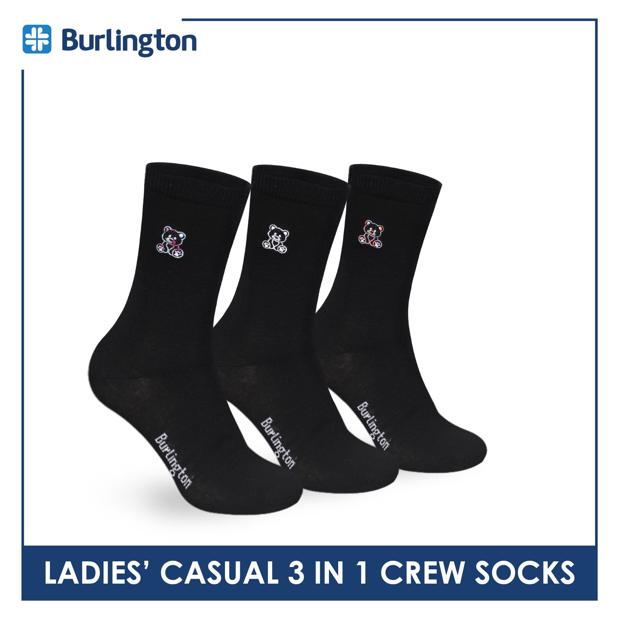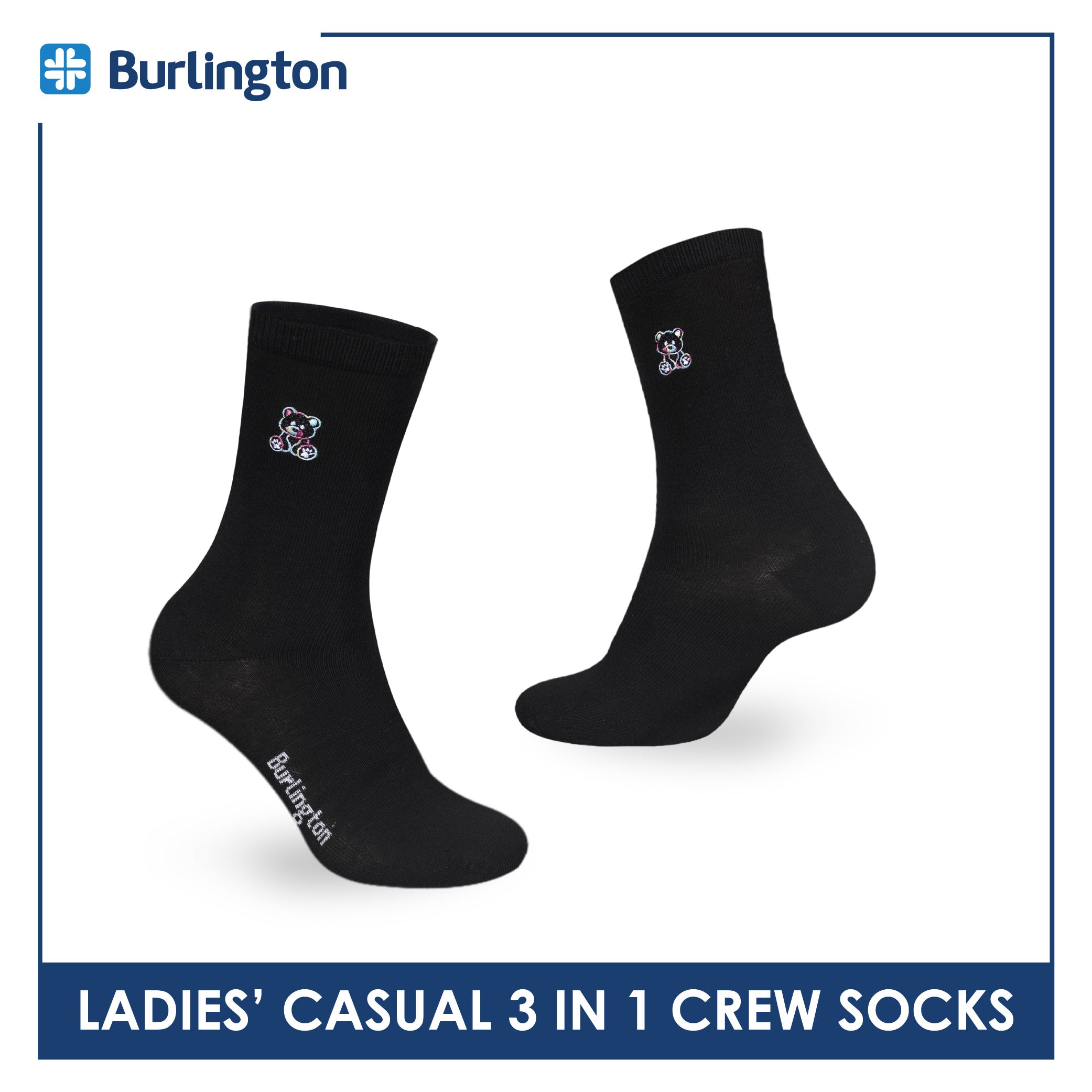 Burlington | Bearlington Ladie's Cotton Embroidered Casual Crew Socks 3 pairs in a pack TBLE6149-3