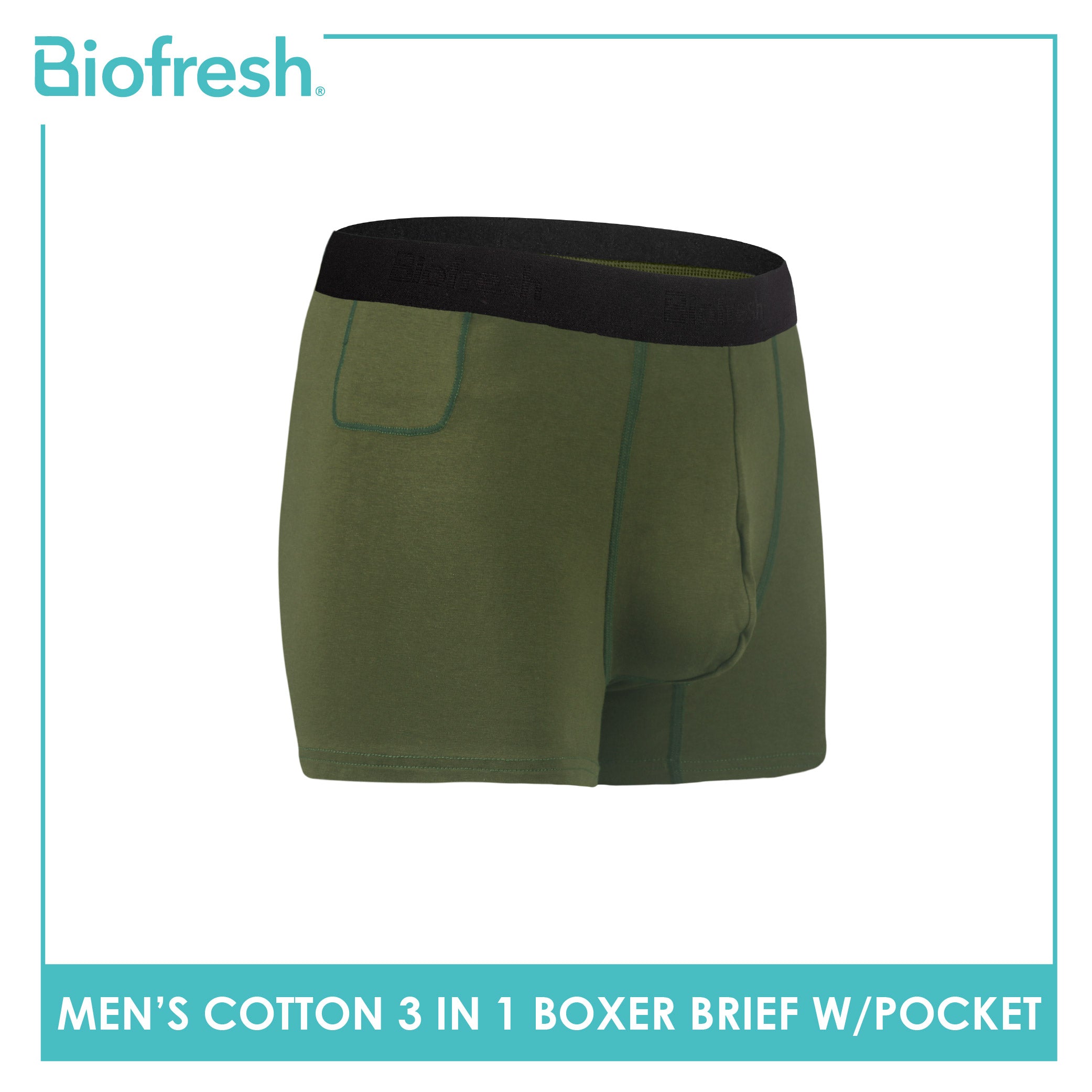 Want to keep your essentials safe and within reach? Try the new and improved Biofresh Men's Antimicrobial Cotton 3 in 1 Boxer Brief with Pocket — designed for smart convenience and all-day freshness.