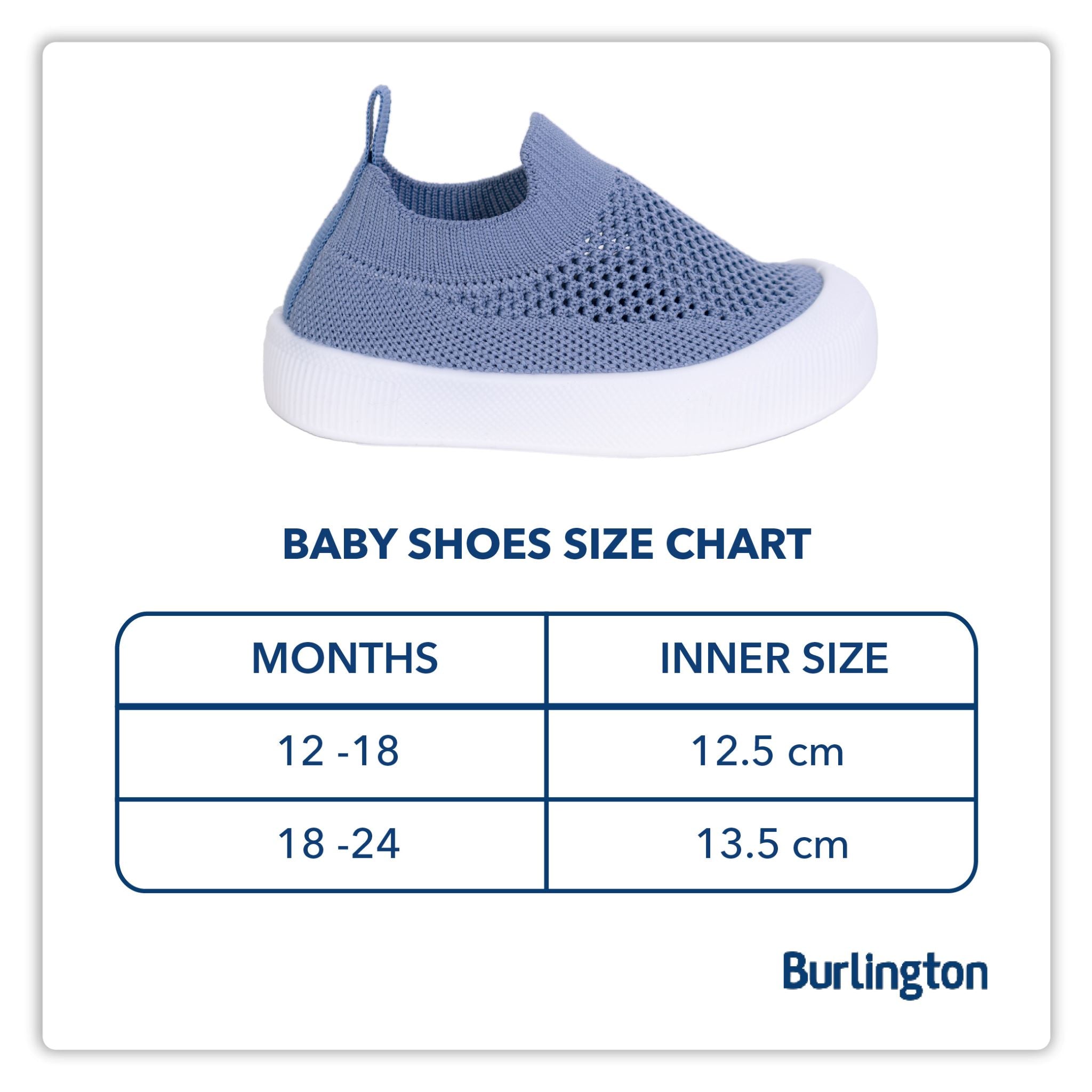 Burlington Infant Shoes are your baby’s first partner for their first steps. Designed for comfort and safety, these shoes are made with breathable knitted material that allows proper airflow to keep little feet fresh and help prevent unwanted odors. The stretchable collar makes it easy to slip on and off, while the soft insole provides gentle cushioning for delicate feet. With its anti-slip sole, it helps prevent sliding as babies start their walking journey. Lightweight, comfortable, and available in different colors—perfect for daily wear or special occasions.