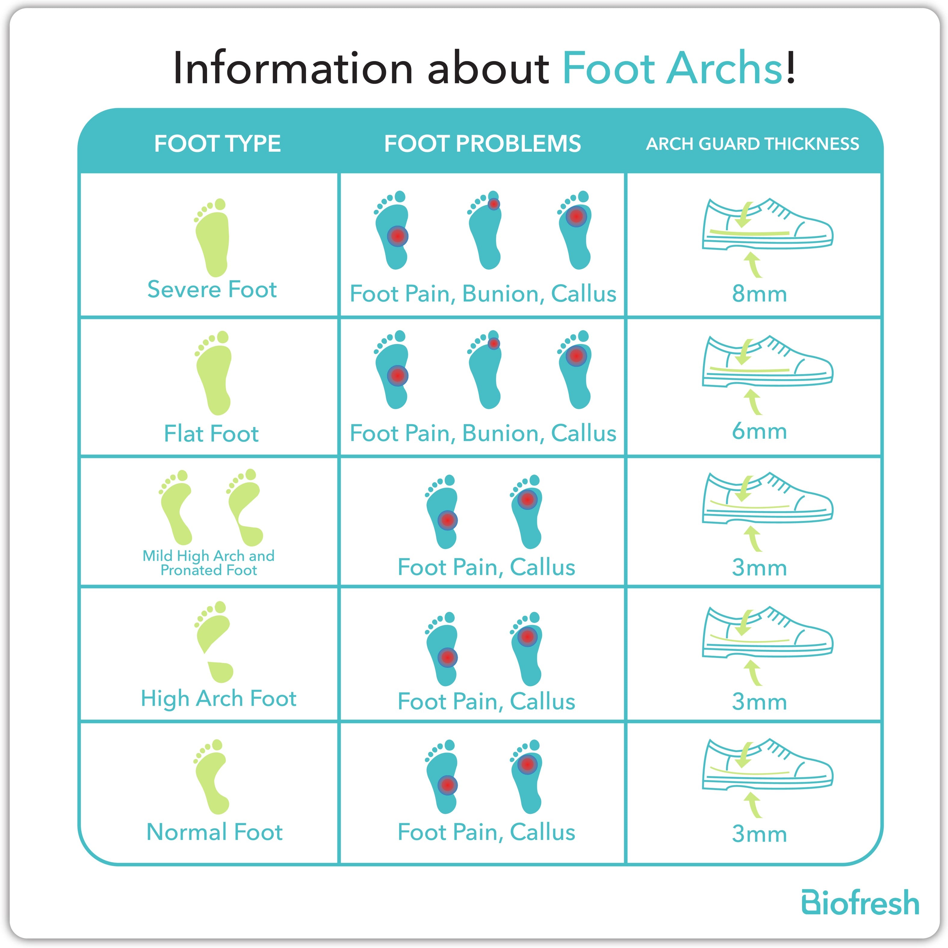 High arch or pronated feet place excess pressure on the forefoot and heel, often causing tendon strain and claw toe. The Biofresh Arch Guard Insole supports the arch and helps distribute pressure evenly across the foot.