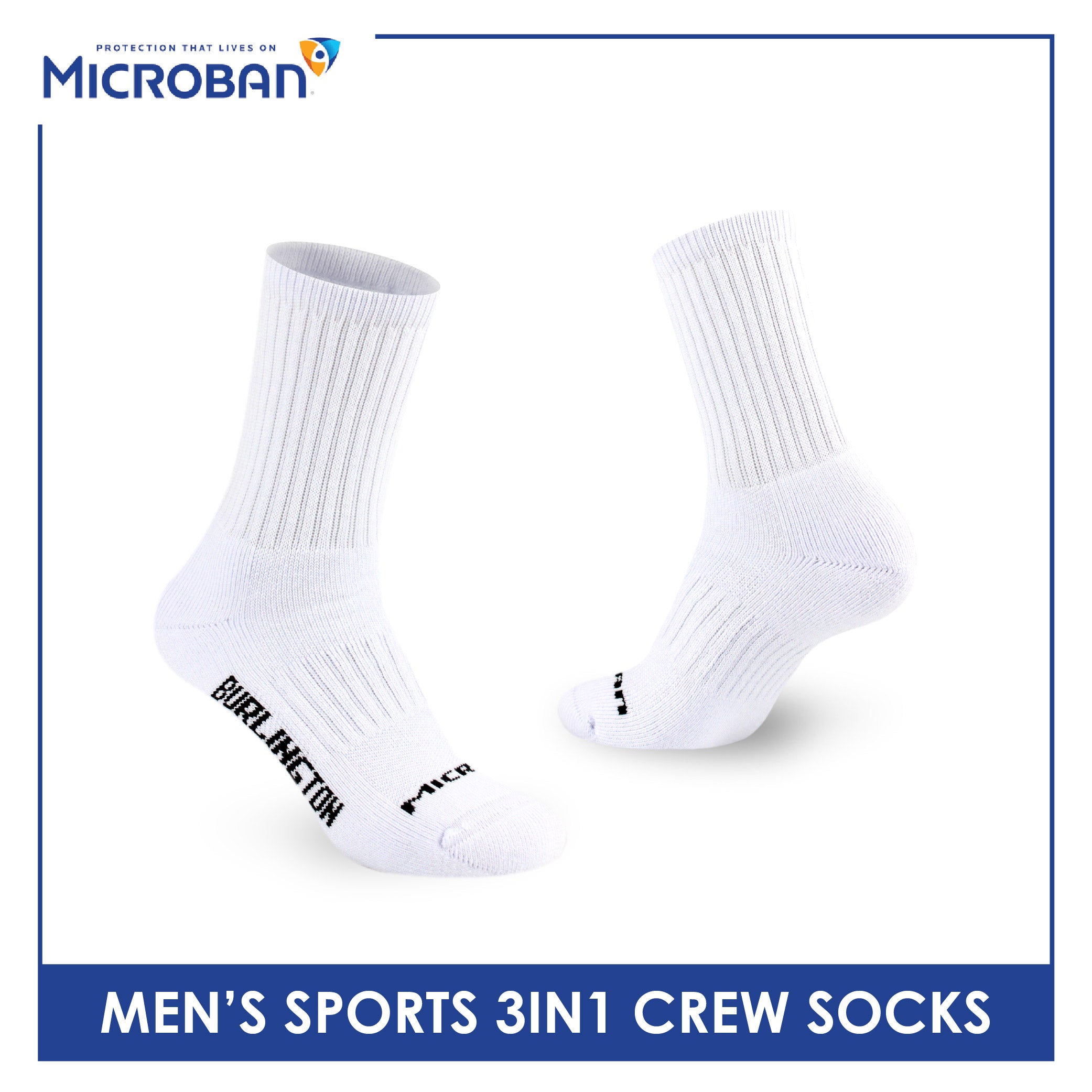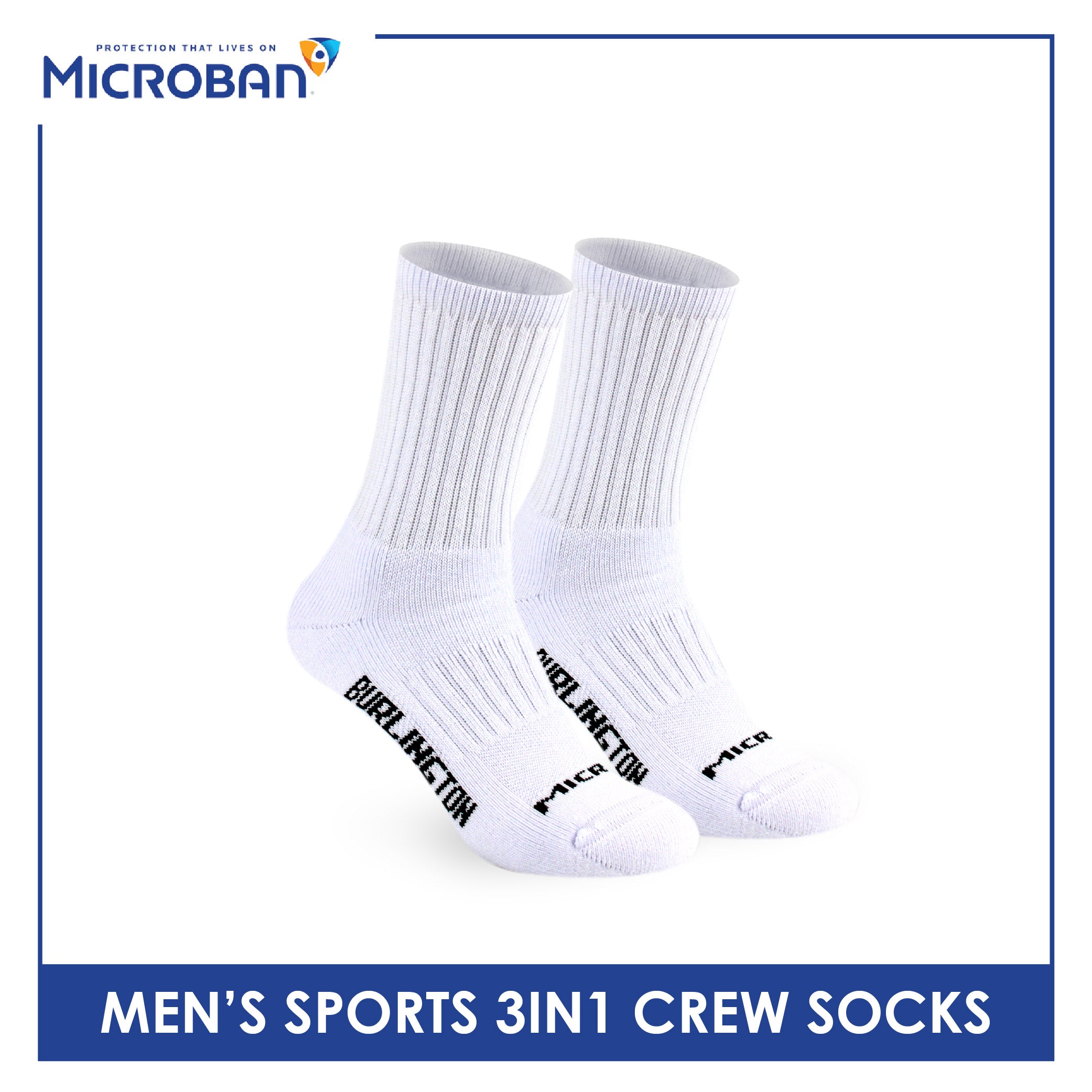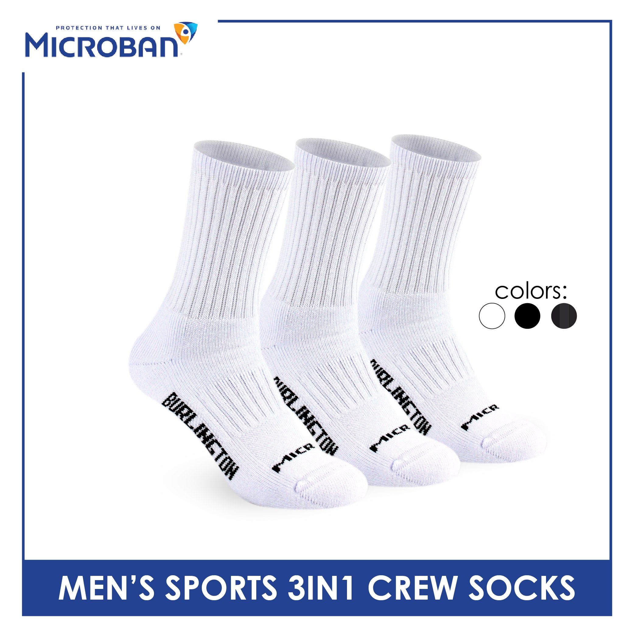 Microban Men's Cotton Thick Sports Crew Socks 3 pairs in a pack VMSKG20